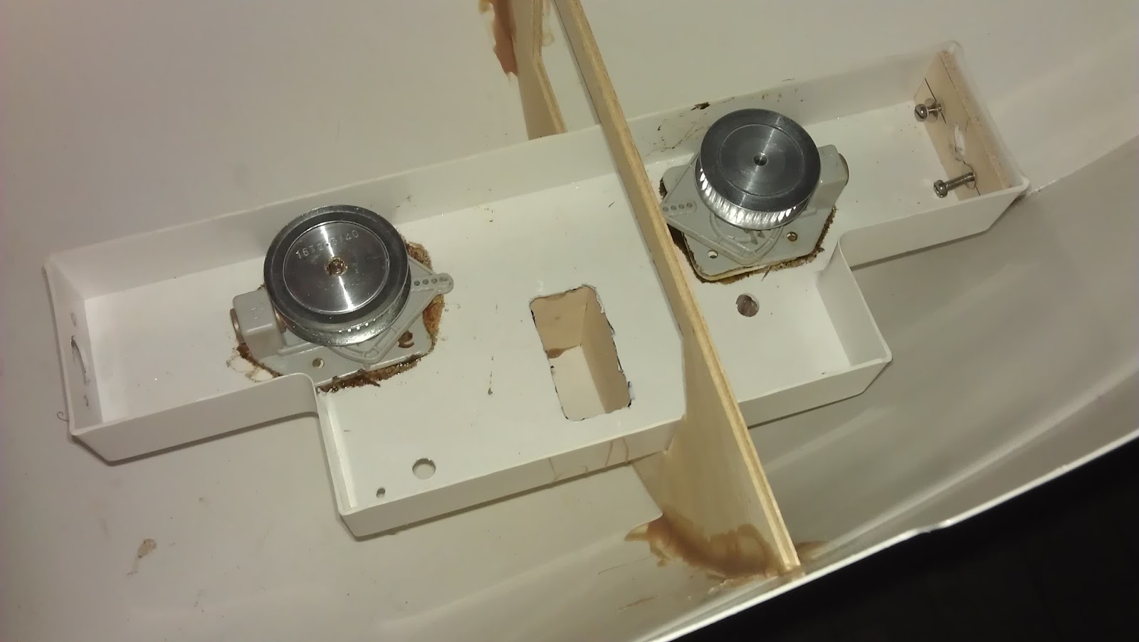 Bag i skibet bliver jeg nød at lave min servoopbygning om. Jeg har købt en ny servo som passer bedre ind. Det vil jeg vise senere...